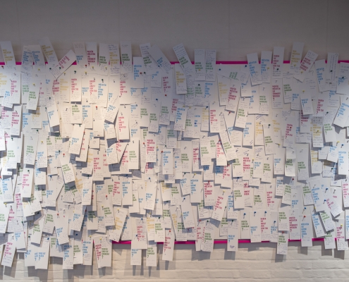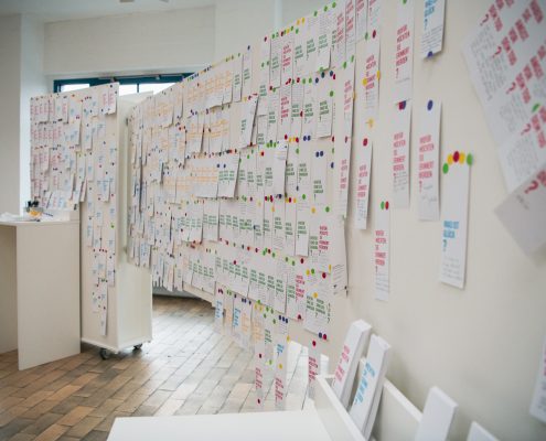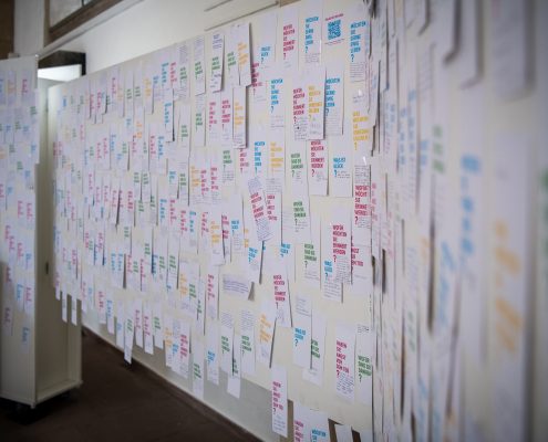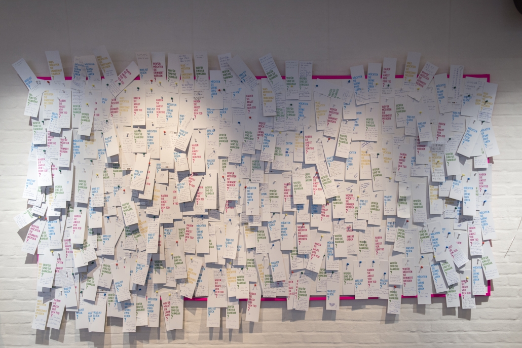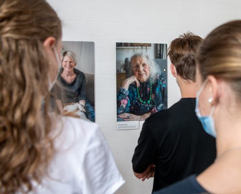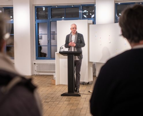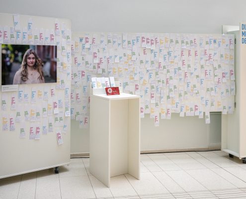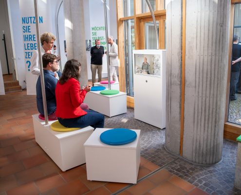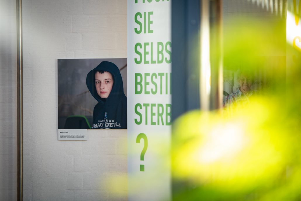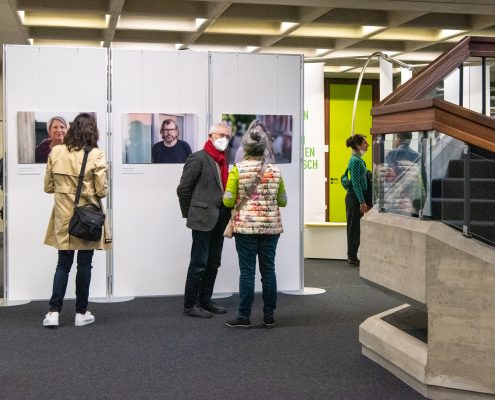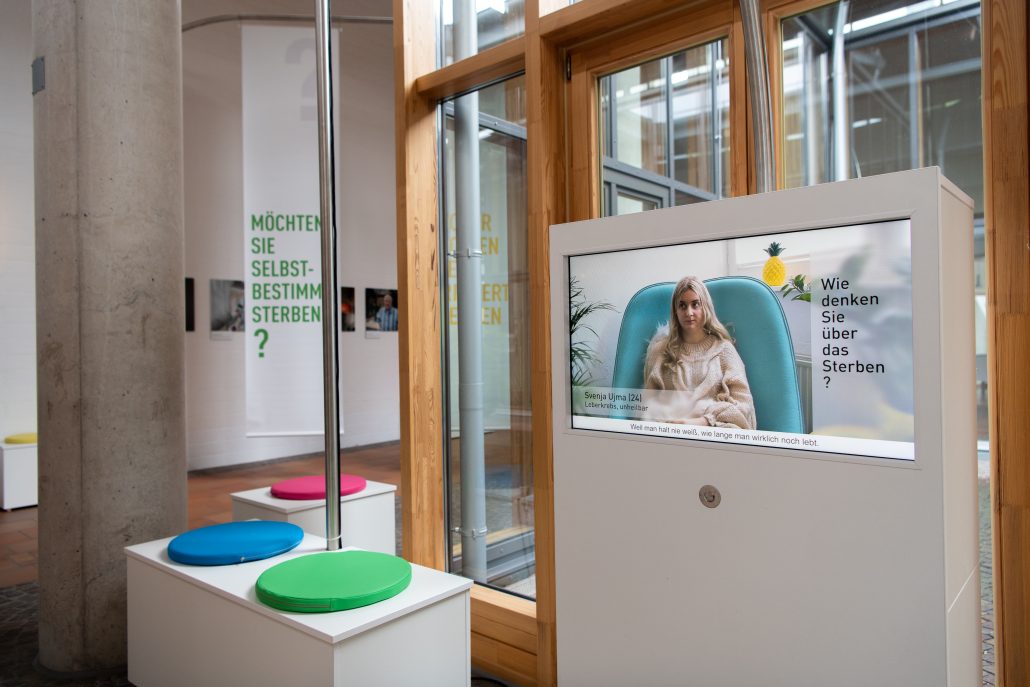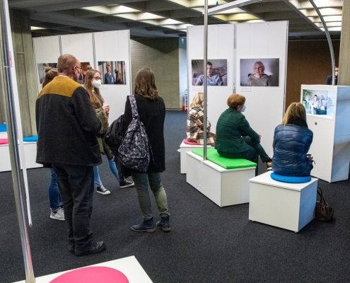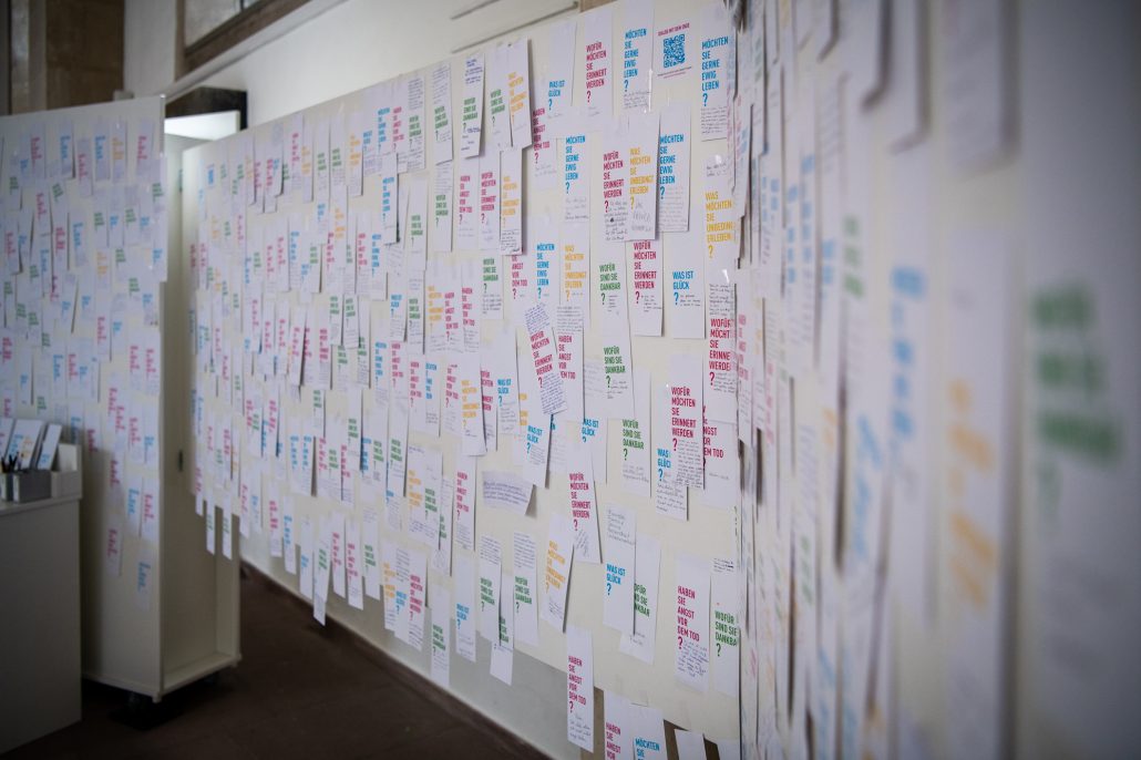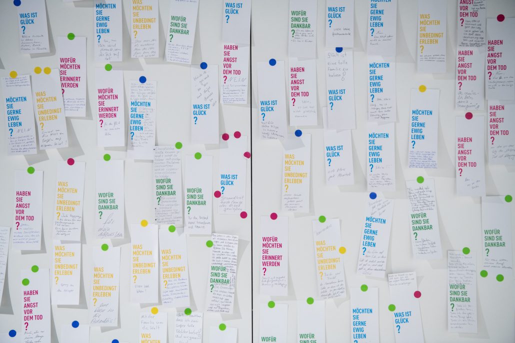 In Anwesenheit des Trierer Oberbürgermeisters Wolfram Leibe wurde die Wanderausstellung am 7. Januar 2022 in der Tuchfabrik Trier eröffnet. Allein in den ersten drei Wochen begrüßte die Ausstellung knapp 600 Besucher:innen. Nach der langen coronabedingten Verzögerung war der Auftakt ein großer Erfolg: Dialog mit dem Ende konnte in den weitläufigen Ausstellungsräumen der Tuchfabrik ganz besonders wirken – und hat einen Nerv getroffen, wovon auch die vielen sehr persönlichen Geschichten zeugten, die die Besucher:innen teilten.