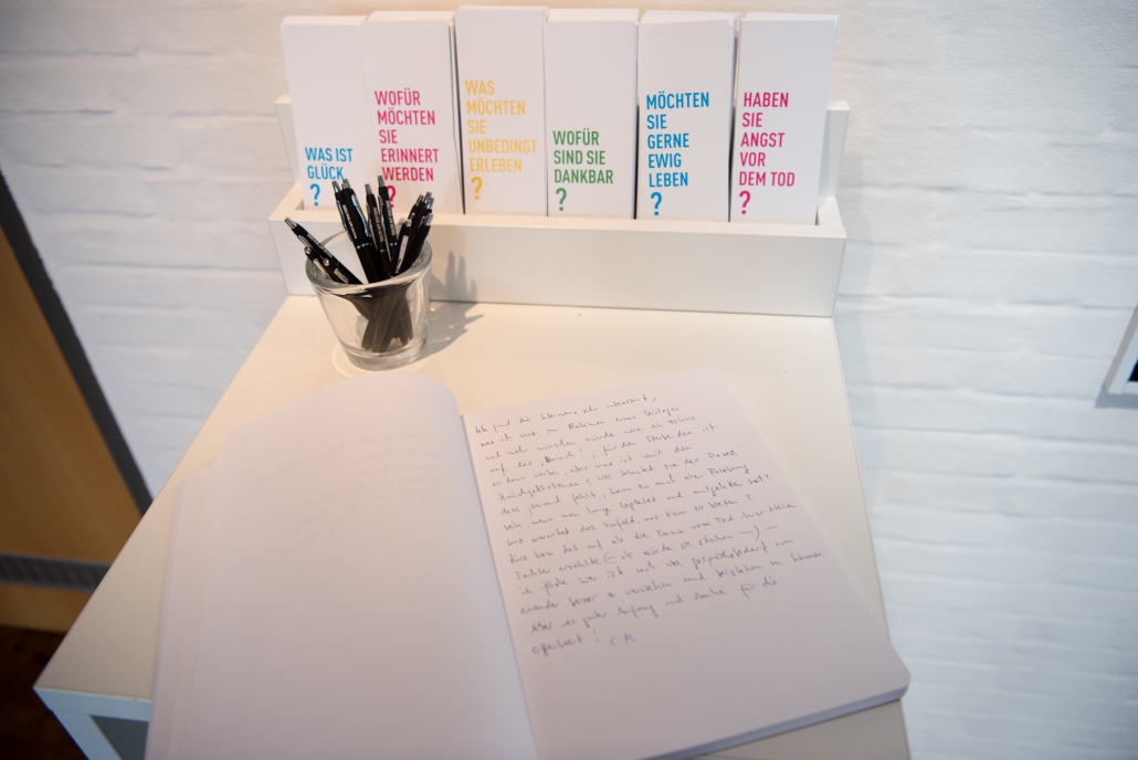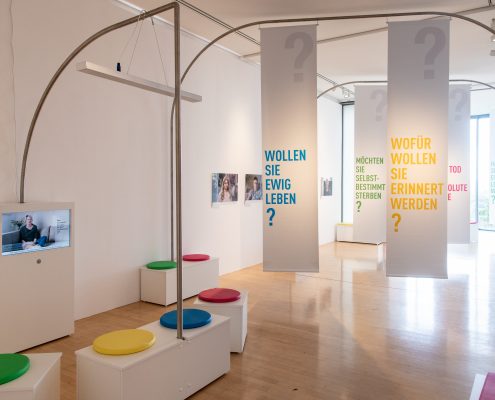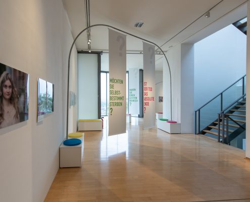 Die Ausstellung Dialog mit dem Ende wurde erstmalig als Auftakt zu dem Projekt Leben mit Tod der Körber-Stiftung im Haus im Park in Bergedorf gezeigt. Ziel des Projektes ist es, die Sprachlosigkeit angesichts des Todes zu überwinden und zu einem bewussten Umgang mit der eigenen Endlichkeit ermutigen.