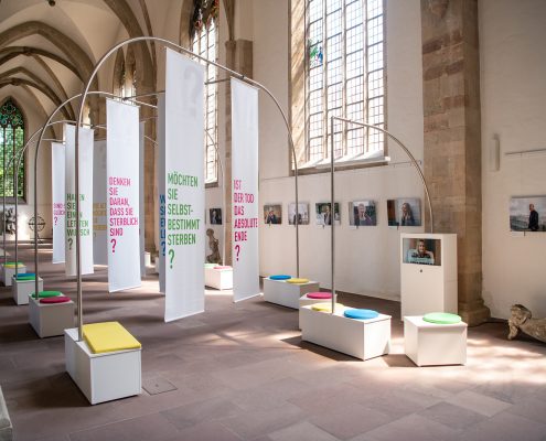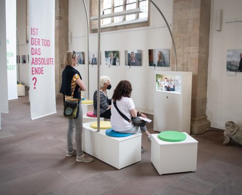 In Anwesenheit der Schwestern des Klosters der Franziskanerinnen sowie des Oberbürgermeisters Richard Arnold wurde die Wanderausstellung am 04. September 2022 in Schwäbisch Gmünd eröffnet. Bis zur Finissage am 28. September nahmen mehr als 1000 Menschen die Gelegenheit wahr, sich beim Besuch der Ausstellung mit den Themen Tod, Sterben und Leben auseinanderzusetzen.