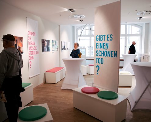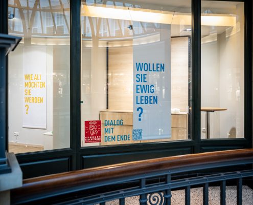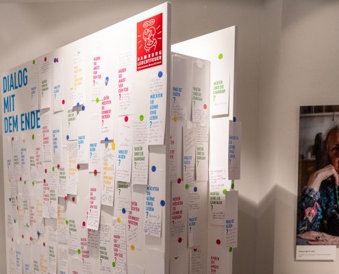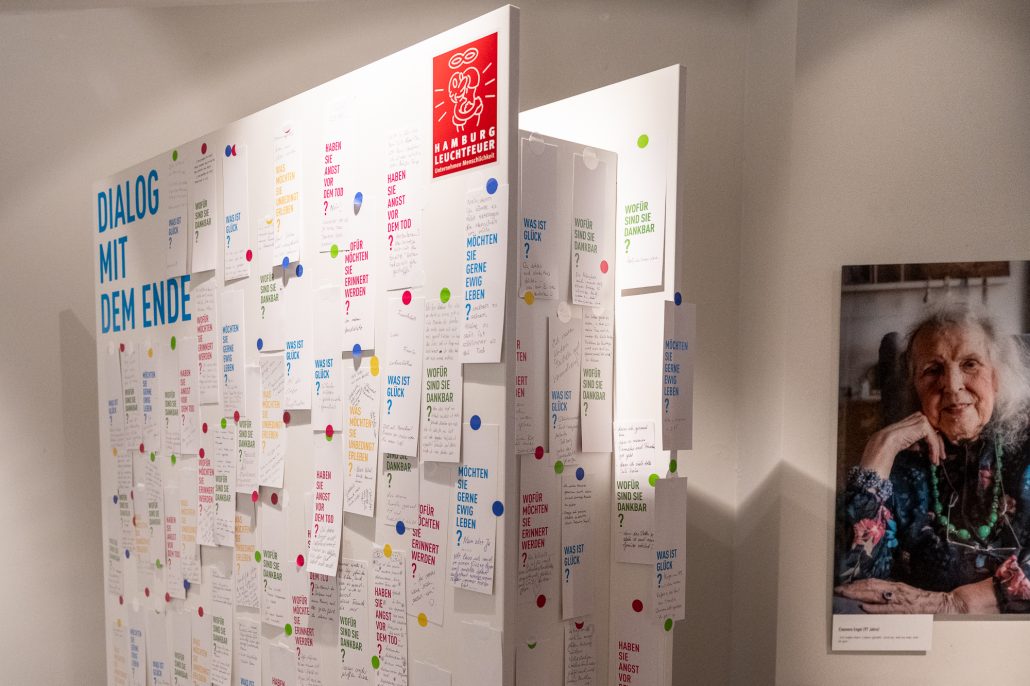 Im Rahmen der Hamburger Hospizwoche 2019 wurde die Ausstellung Dialog mit dem Ende auch im Altonaer Lotsenhaus von Hamburg Leuchtfeuer präsentiert. Das Lotsenhaus ist mit seinem Angebot aus Bestattung, Bildung und Trauerbegleitung bundesweit einmalig.